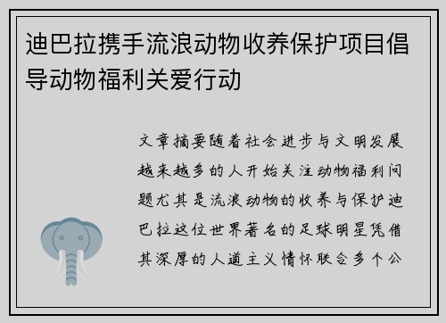 迪巴拉携手流浪动物收养保护项目倡导动物福利关爱行动